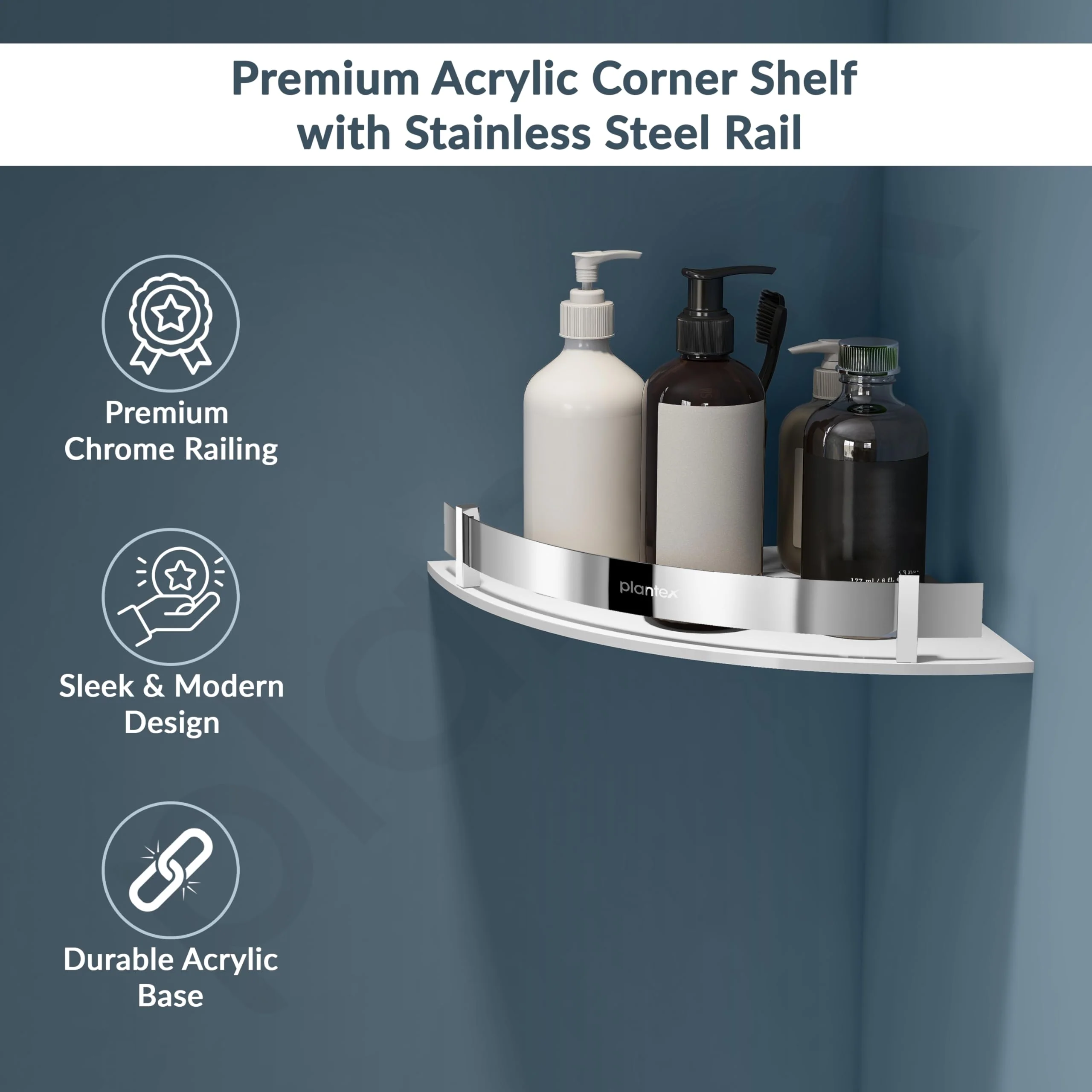 - ๐๐๐ญ๐๐ซ๐ข๐๐ฅ: Plantex acrylic corner shelf is highly durable as a 5 mm premium quality acrylic sheet is used for its manufacturing. Its wall mount brackets and railings are made up of nickel-chrome silver plating which is corrosion-free. Long-lasting characteristics ensure excellent performance for long service time, ideal for use in a humid bathroom environment.