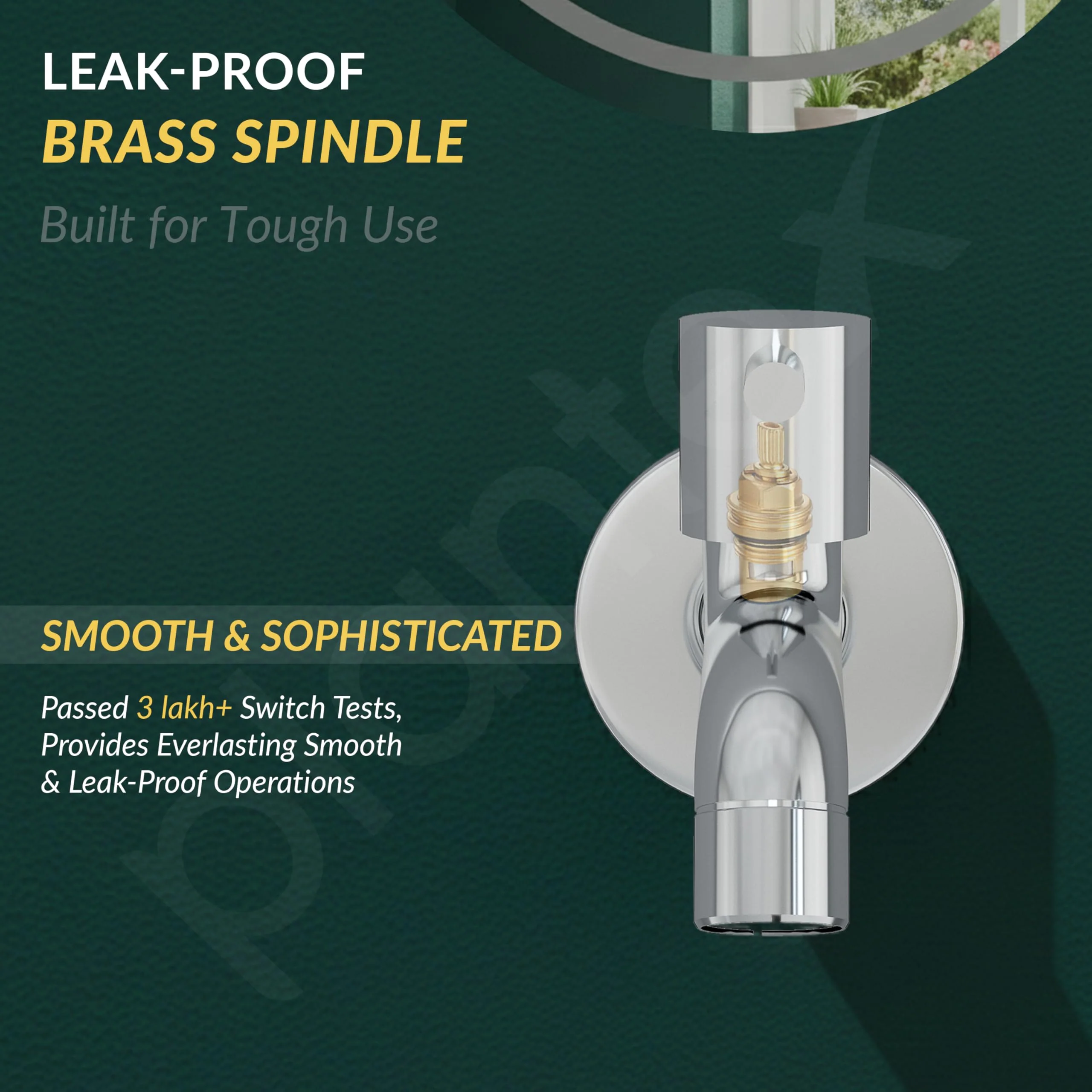 Plantex Long Body Bib Cock for Bathroom with Water Saving Aerator/Brass Spindle Bib Tap with Wall Flange and Teflon Tape for Bathroom (MKS-1272-Chrome)