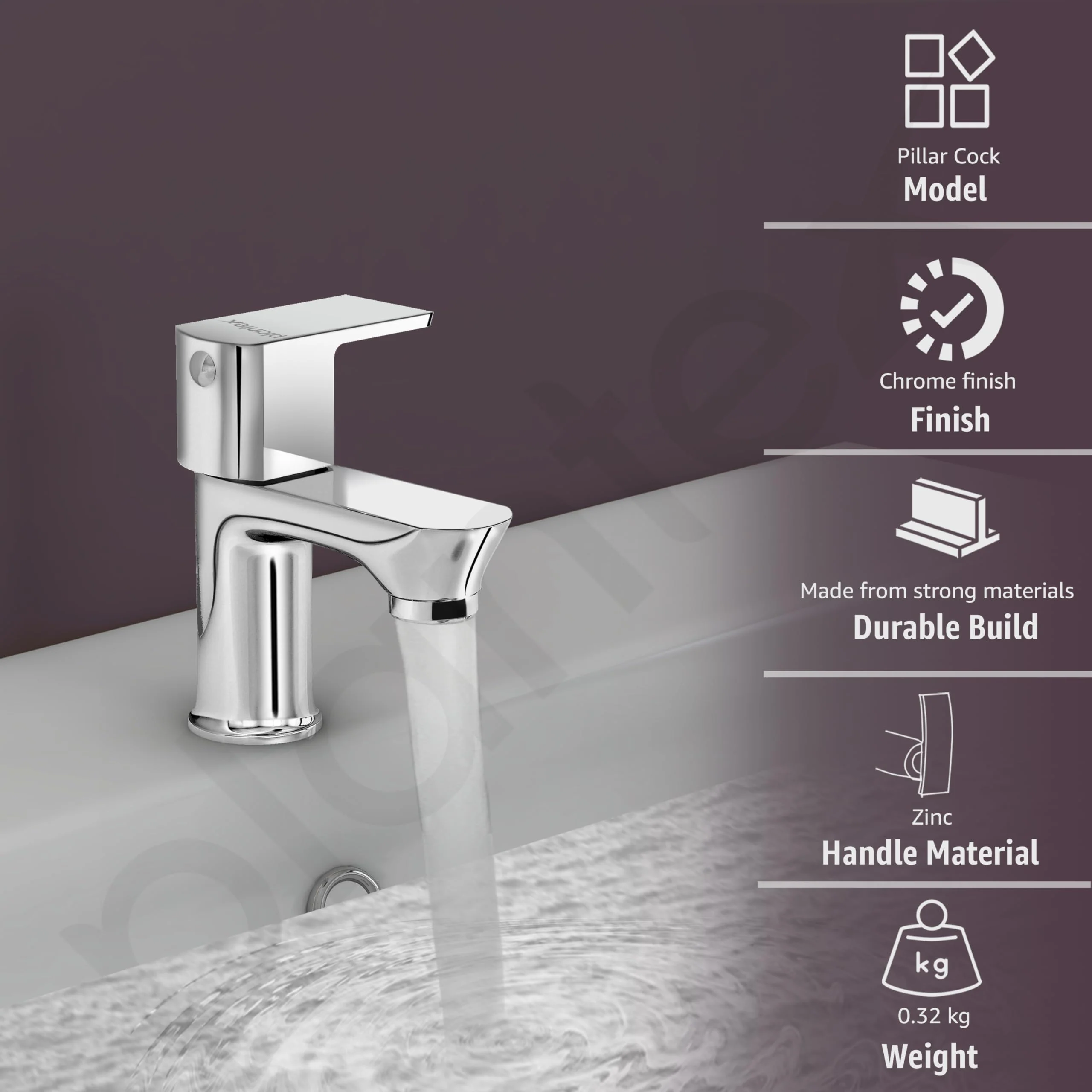 Plantex Pillar Tap for Bathroom with Water Saving Aerator/Single Lever Tap for Wash Basin with Teflon Tape/Tap for Table Top Deck Mount Pillar Tap - Pack of 1 (Chrome)
