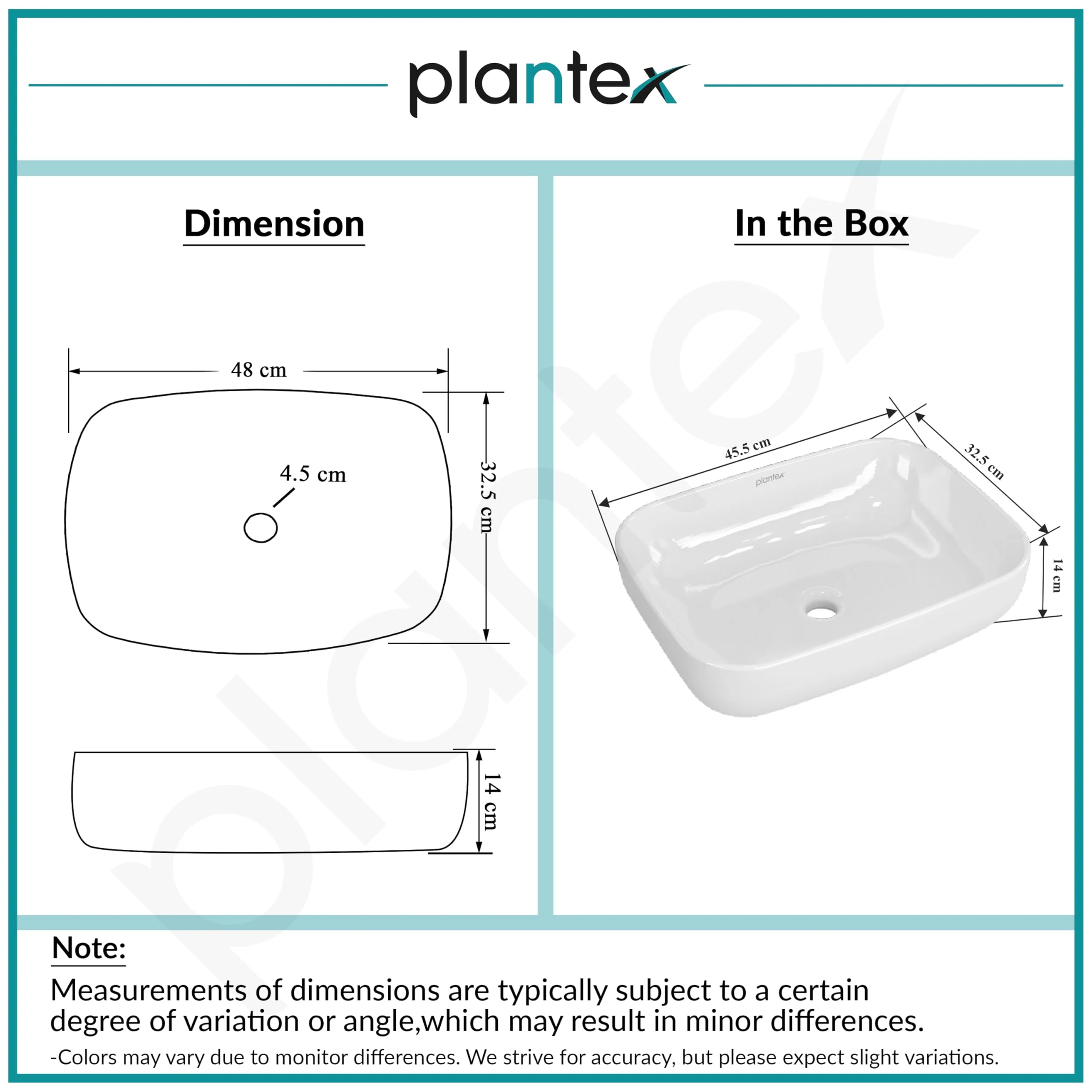- ๐๐๐๐๐๐๐๐ โ Plantex tabletop wash basin is made for the bathroom you desire, built with quality ceramic material, and fired at a high temperature making it durable and reliable to use with a longer life span. Every fine craftsmanship is polished to present the most execute premium ceramic basins, created with perfection, The smooth edges and minimalist design will add a touch of elegance and beauty to your bathroom, which is eye-catching.