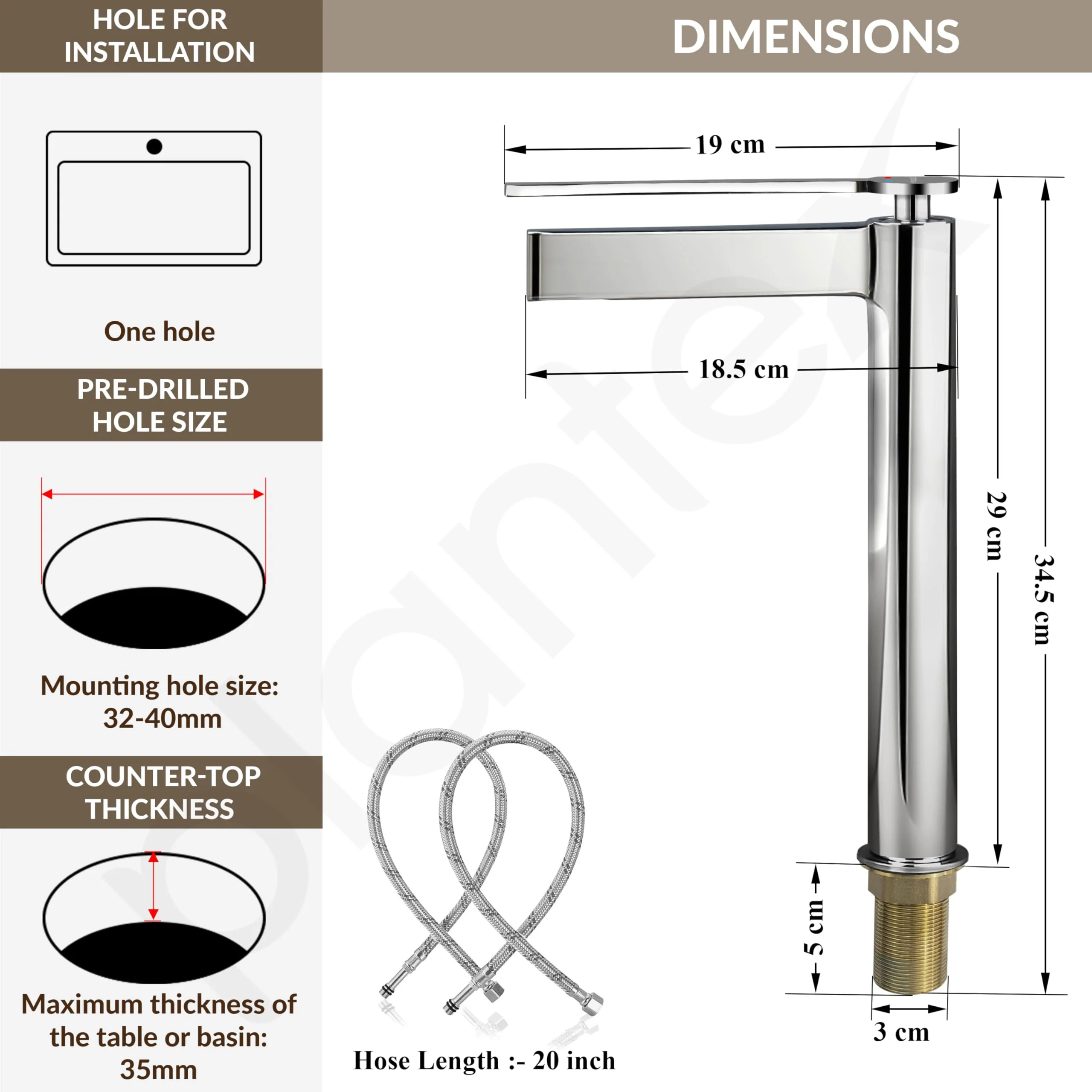 - ๐๐ข๐ฆ๐ฉ๐ฅ๐ข๐๐ฒ ๐๐๐ญ๐๐ซ ๐๐จ๐ง๐ญ๐ซ๐จ๐ฅ : Plantex Tap for wash basin features dual hoses for hot and cold water, a standard G1/2 connection, and allows effortless water and temperature control.