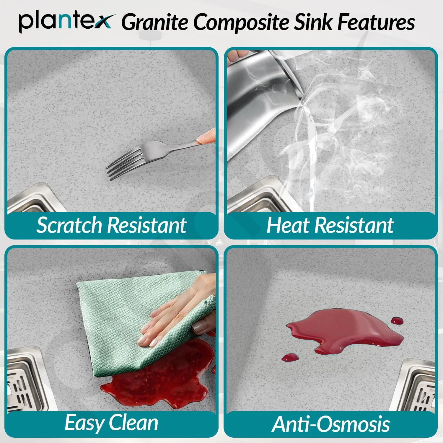 - ๐๐ฑ๐ญ๐ซ๐๐ฆ๐๐ฅ๐ฒ ๐๐ฎ๐ซ๐๐๐ฅ๐ ๐๐๐ญ๐๐ซ๐ข๐๐ฅ: Plantex kitchen sink with drain board is constructed with quartz material for super sturdy and solidity, equipped with the highest scratch resistance. The tone or shade of the quartz sink may vary slightly due to batch manufacturing and lighting differences.