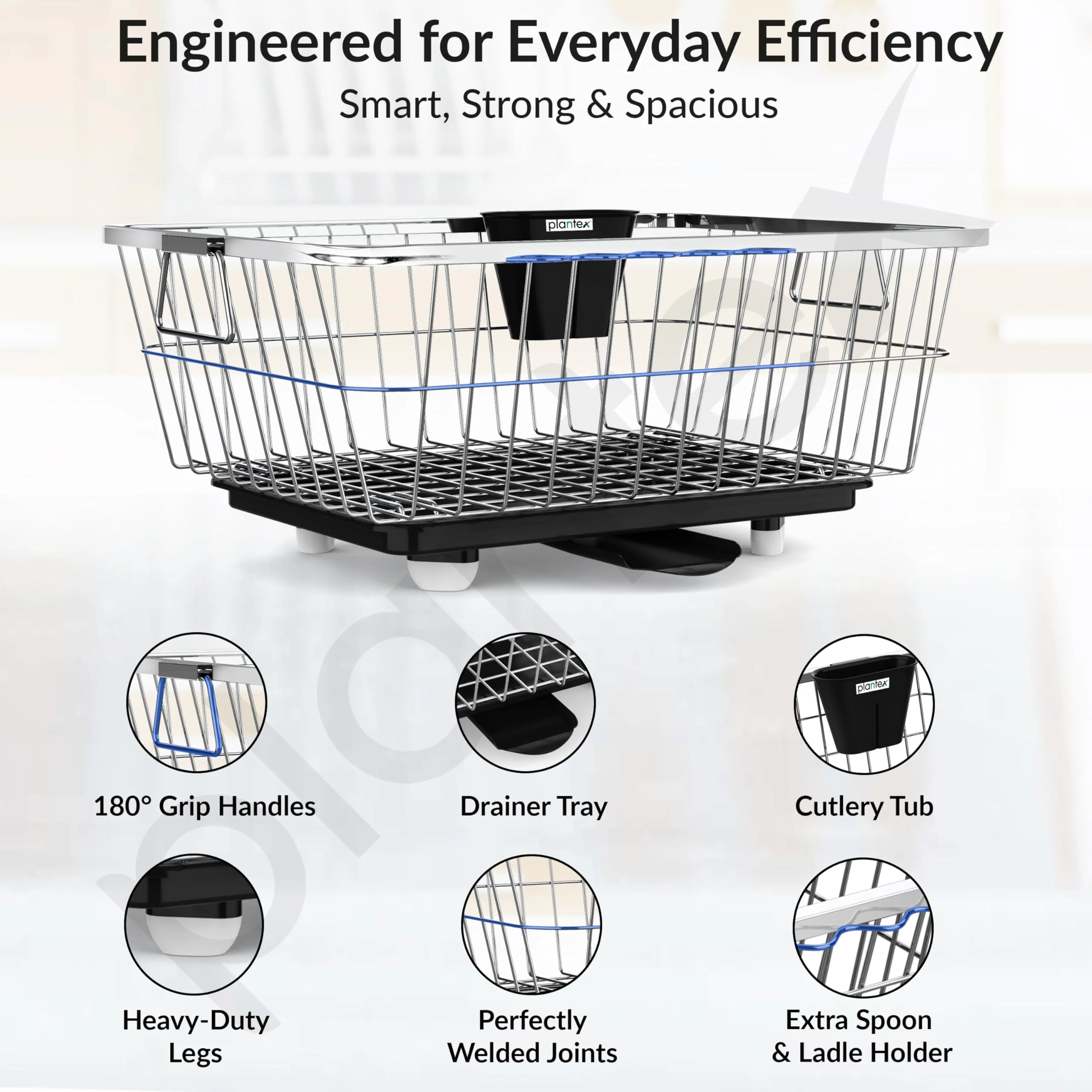 Plantex Stainless Steel Dish Drainer Basket for Kitchen Utensils/Dish Drying Rack with Drainer/Bartan Basket/Plate Stand Size - 23X9 Inch (Chrome)