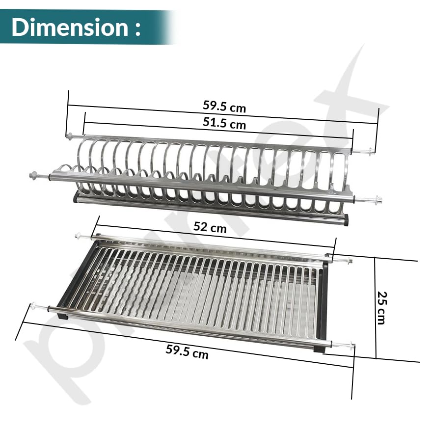 Plantex Stainless Steel Dish Plate Rack Drainer/600mm GTPT Tray for Kitchen/Cabinet Kitchen Organizer for Quick Drying and Storage - Set of 3 Pcs (Chrome)