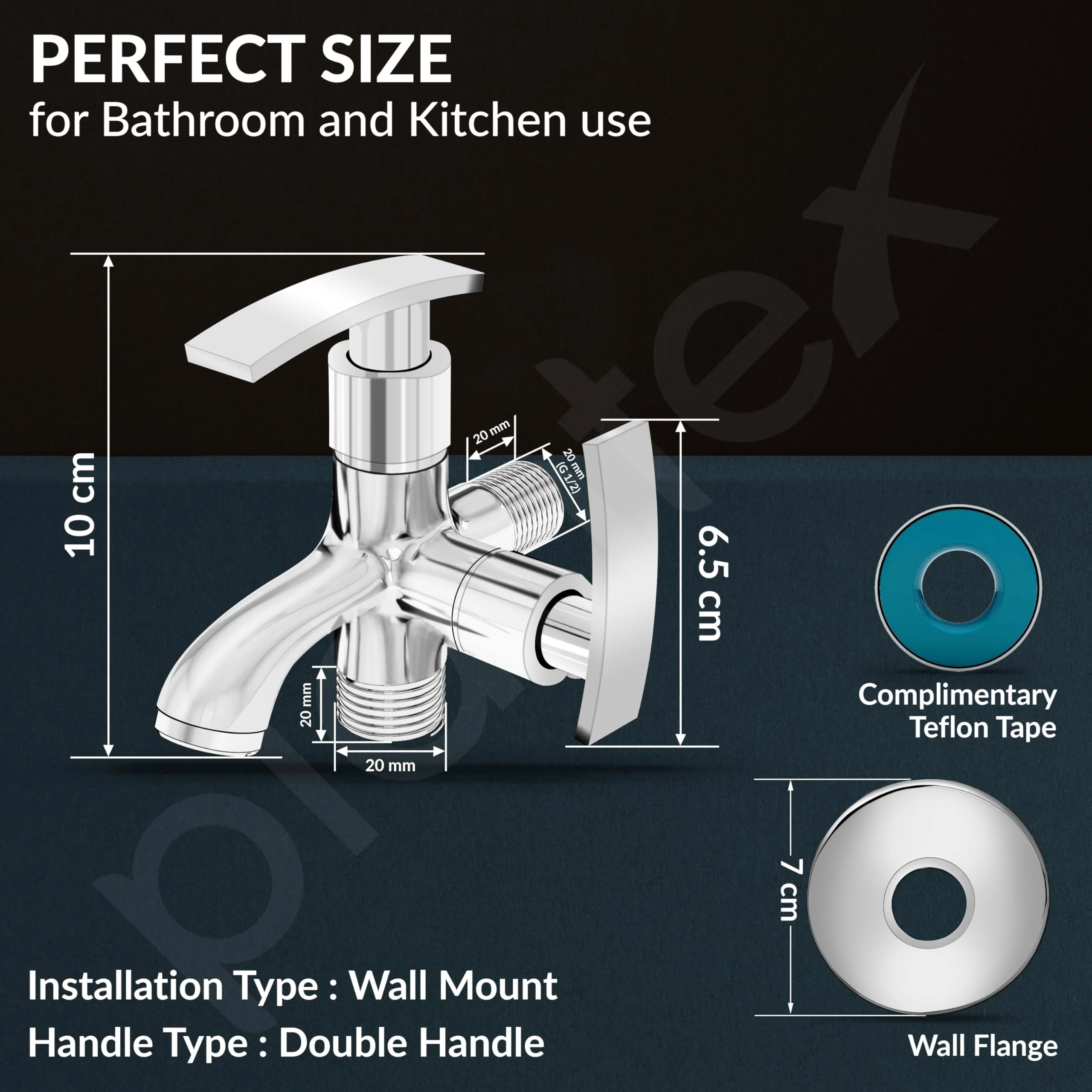 Plantex Two Way Tap for Washing Machine with Water Saving Aerator/2 in 1 Bibcock Water Tap for Bathroom with Brass Spindle and Wall Flange/Bathroom Tap-(SMR-1265-Chrome)